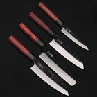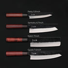 Blade Types: Gyuto (7.1 in / 180mm), Nakiri (7.1 in / 180mm), Petty (5.5 in / 140mm), Santoku (6.7 in / 170mm)