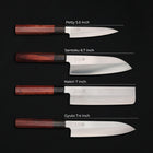 Blade Types: Gyuto (7.1 in / 180mm), Nakiri (7.1 in / 180mm), Petty (5.5 in / 140mm), Santoku (6.7 in / 170mm)