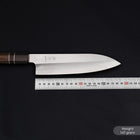 The Gyuto’s gently curved edge is ideal for a variety of kitchen tasks—from rock-chopping herbs to finely slicing meat and vegetables. Its razor-sharp edge delivers clean, effortless cuts, while the moisture-resistant ebony handle offers a secure, ergonomic grip that enhances control and reduces fatigue.