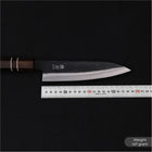At the heart of this knife is a Blue Steel #2 (Aogami #2) core, a premium high-carbon steel admired for its razor-sharp edge, clean cutting feel, and excellent edge retention. With a hardness of around ~62 HRC, it delivers a crisp, responsive performance that feels immediately different—less force, more precision, and a noticeably smoother glide through ingredients.