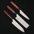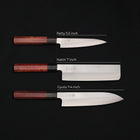 Blade Types: Gyuto (7.1 in / 180mm), Nakiri (7.1 in / 180mm), Petty (5.5 in / 140mm)