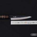 The Petty knife excels at precise, detailed prep when a larger knife feels too bulky. Use it for peeling, trimming fruits and vegetables, and handling small, delicate ingredients with speed and accuracy. Its premium Blue Steel blade delivers the crisp sharpness Japanese carbon steel is known for high hardness, strong edge retention, and easy sharpening; while the traditional ebony handle adds secure, moisture-resistant comfort.